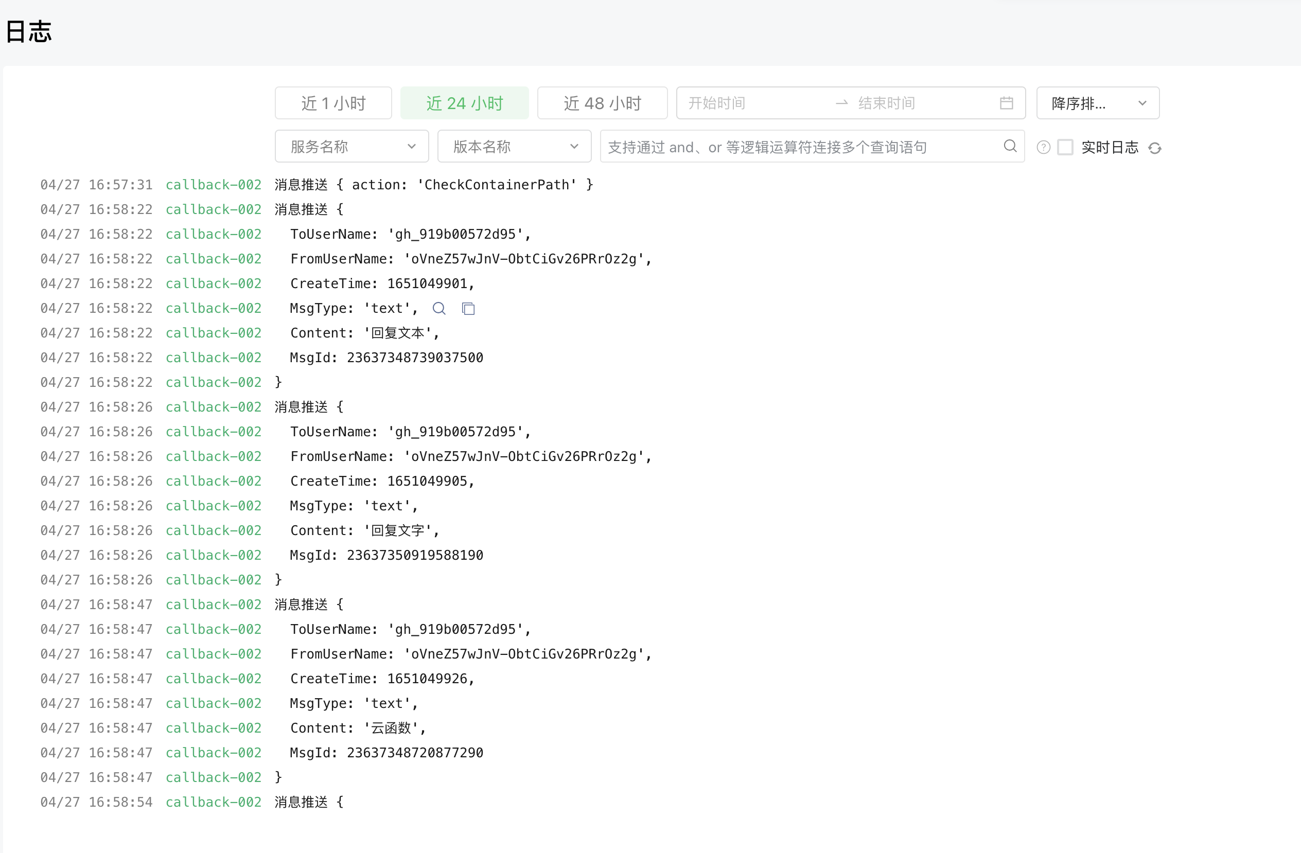 比如接收到了「小程序/公众号」的客服消息,可以在请求体中得到发送者openid,unionid,以及发送的内容。