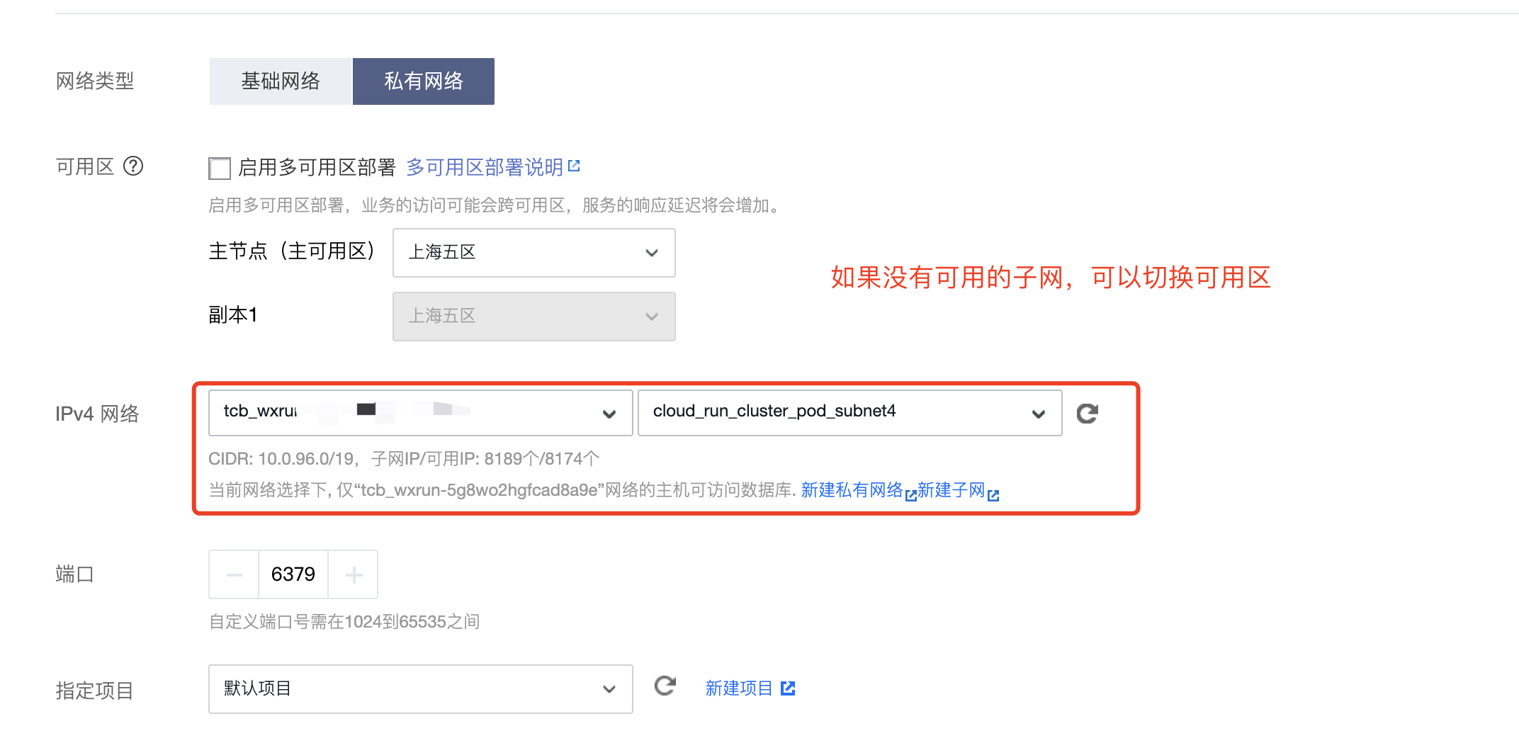 在当前腾讯云账号下直接购买需要的资源,在这里以redis为例子,在购买时,选择VPC和微信云托管环境保持一致。