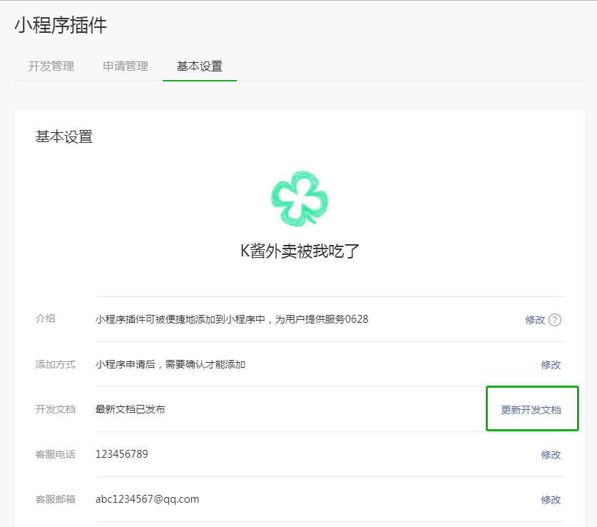 插件在提交审核前,请确认已设置插件名称、插件头像、插件简介等信息,并已上传插件开发文档,便于开发者接入插件。